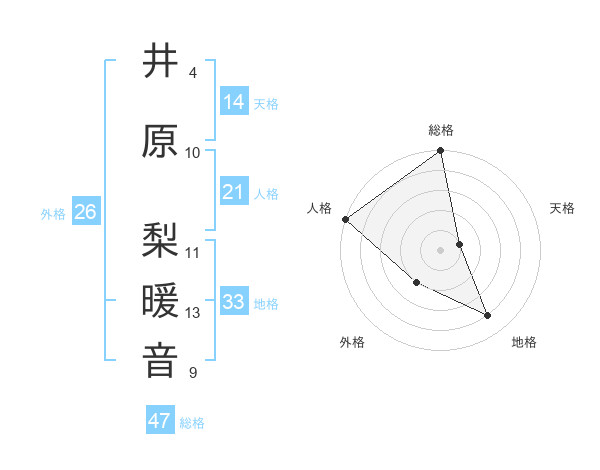 井原 梨暖音さんの総格は47画の5点