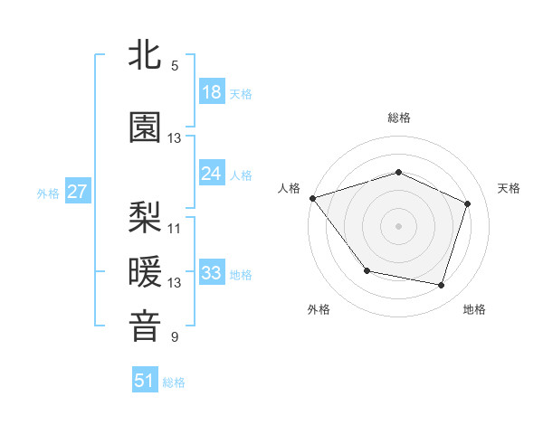 北園 梨暖音さんの総格は51画の3点!
