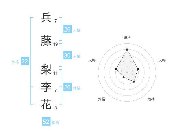 兵藤 梨李花さんを姓名の画数から五運を鑑定