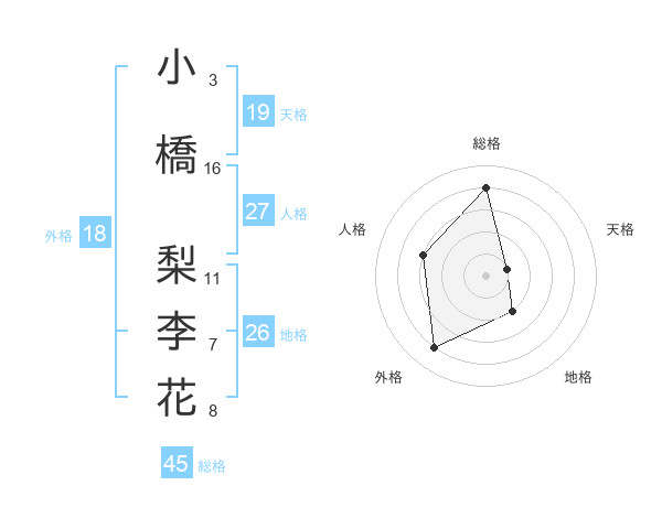小橋 梨李花さんを姓名の画数から五運を鑑定