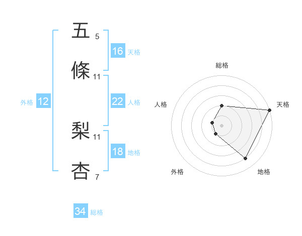 五條 梨杏さんの天格は16画の5点!