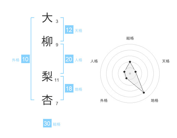 大柳 梨杏さんを姓名の画数から五運を鑑定