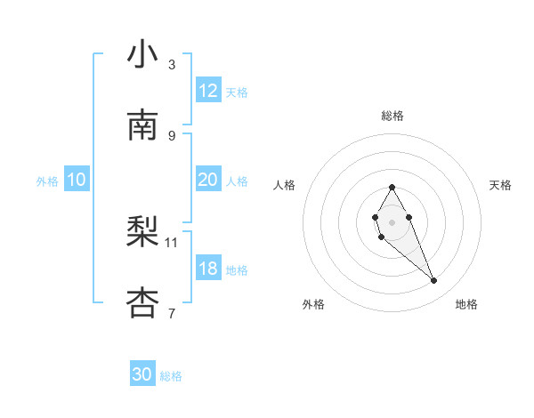 小南 梨杏さんの総格は30画の2点!