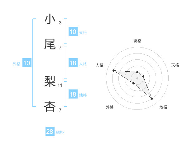 小尾 梨杏さんを姓名の画数から五運を鑑定