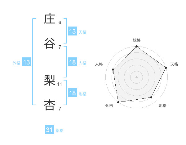 庄谷 梨杏さんの天格は13画の5点!