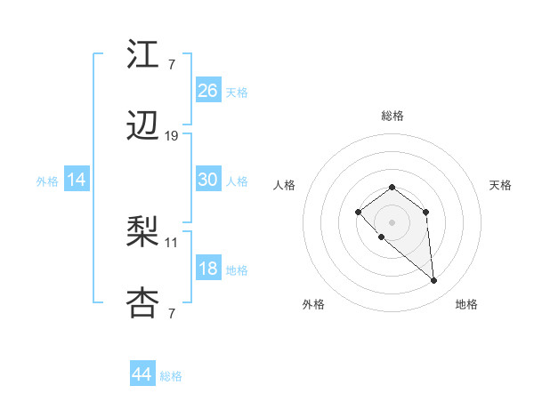 江辺 梨杏さんの総格は44画の2点!