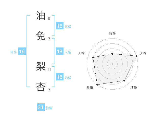 油免 梨杏さんを姓名の画数から五運を鑑定