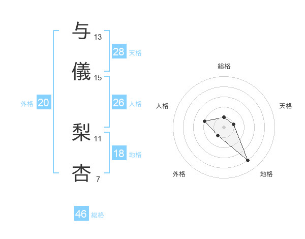与儀 梨杏さんの総格は46画の1点!