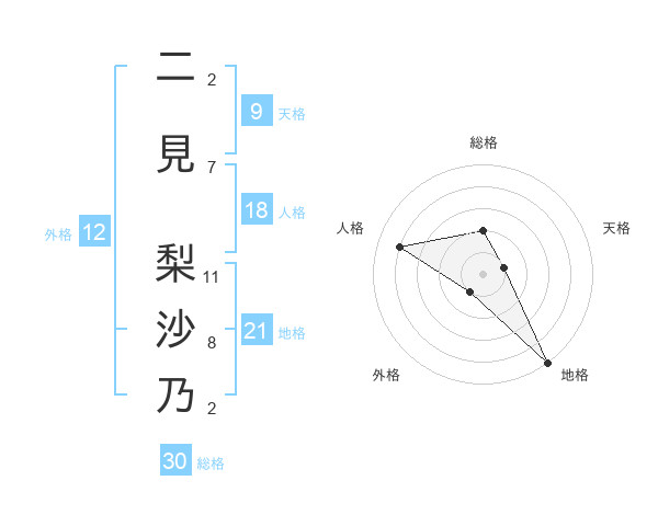 二見 梨沙乃さんを姓名の画数から五運を鑑定