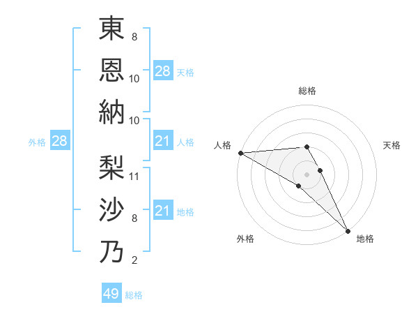 東恩納 梨沙乃さんを姓名の画数から五運を鑑定