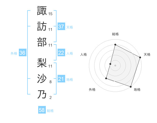諏訪部 梨沙乃さんの天格は37画の5点!
