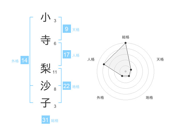 小寺 梨沙子さんの総格は31画の5点!