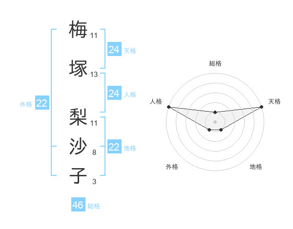梅塚 梨沙子さんを姓名の画数から五運を鑑定