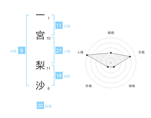 一宮 梨沙さんの総格は30画の2点!