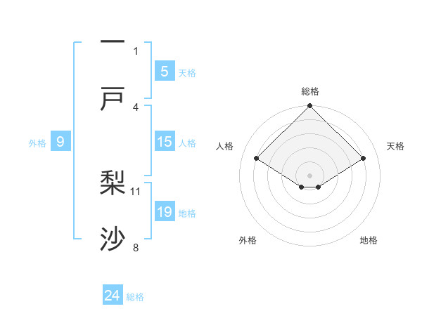 一戸 梨沙さんの総格は24画の5点!