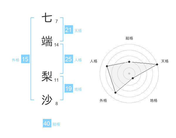 七端 梨沙さんの天格は21画の5点!