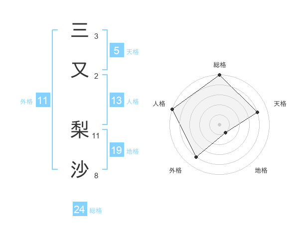 三又 梨沙さんの外格は11画の4点!