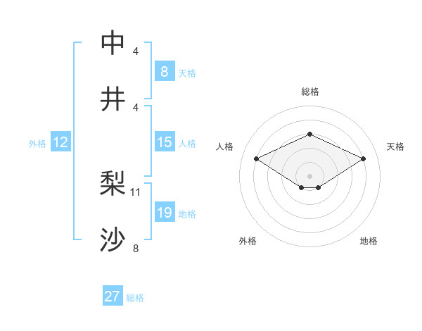 中井 梨沙さんを姓名の画数から五運を鑑定