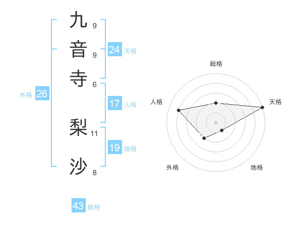 九音寺 梨沙さんの天格は24画の5点!