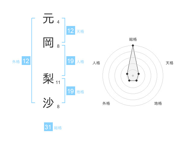元岡 梨沙さんを姓名の画数から五運を鑑定