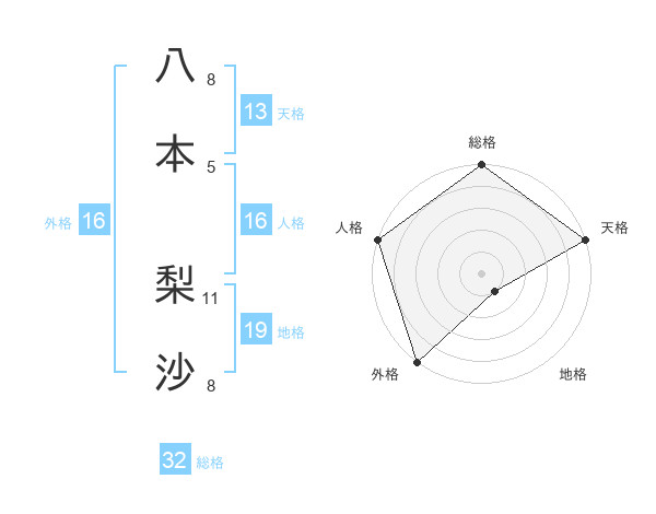 八本 梨沙さんを姓名の画数から五運を鑑定