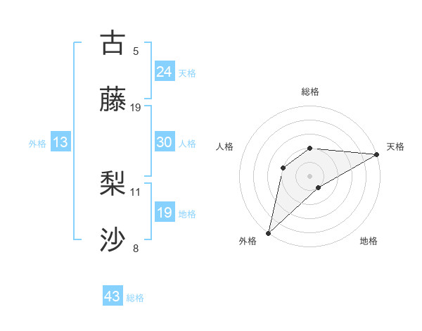 古藤 梨沙さんの天格は24画の5点!