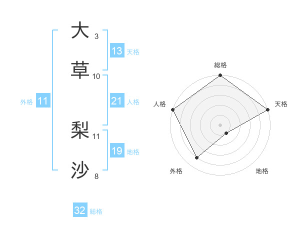 大草 梨沙さんを姓名の画数から五運を鑑定