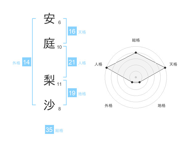 安庭 梨沙さんを姓名の画数から五運を鑑定