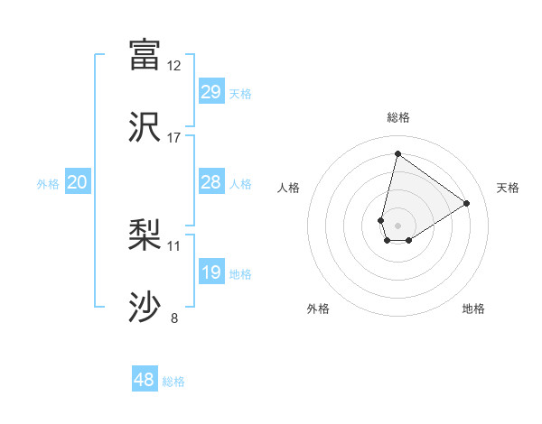 富沢 梨沙さんを姓名の画数から五運を鑑定