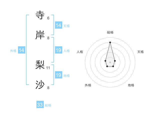 寺岸 梨沙さんの総格は33画の4点!
