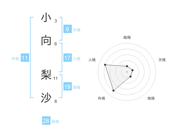 小向 梨沙さんの総格は28画の1点!