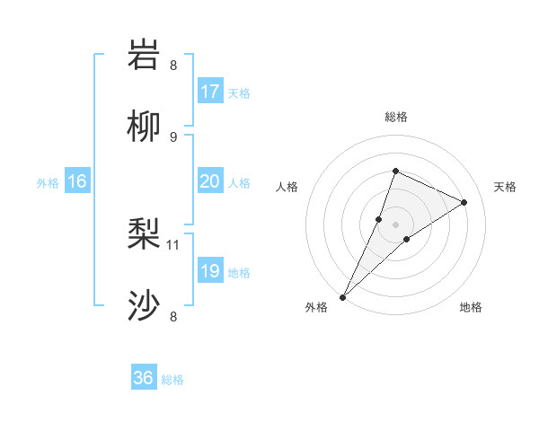 岩柳 梨沙さんを姓名の画数から五運を鑑定