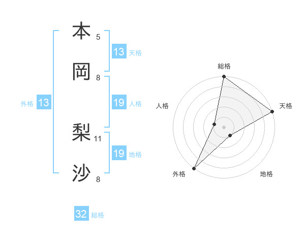 本岡 梨沙さんの天格は13画の5点!