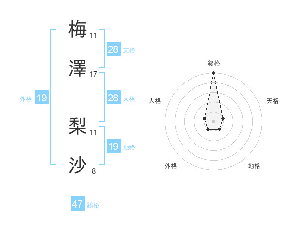 梅澤 梨沙さんを姓名の画数から五運を鑑定