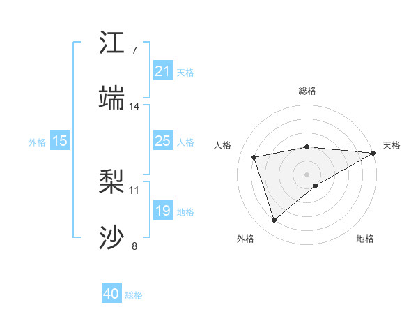 江端 梨沙さんを姓名の画数から五運を鑑定