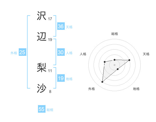 沢辺 梨沙さんを姓名の画数から五運を鑑定