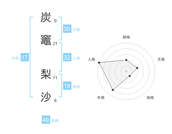 炭竈 梨沙さんの総格は49画の2点!