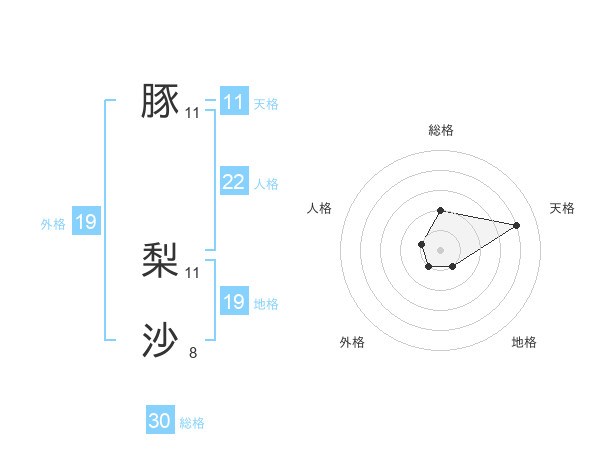 豚 梨沙さんの外格は19画の1点!