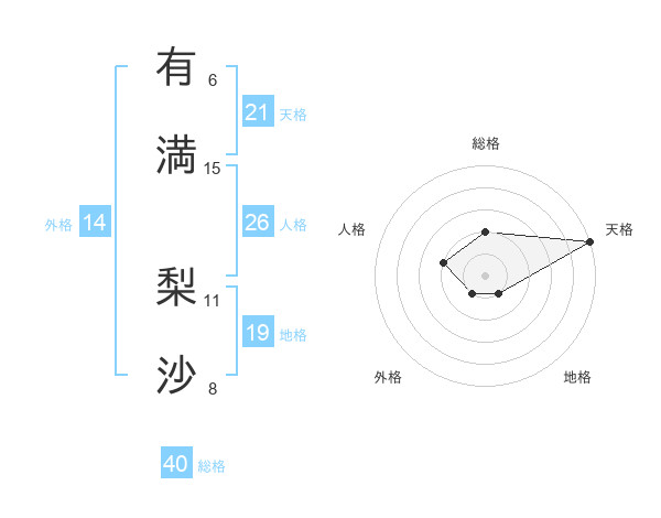 有満 梨沙さんを姓名の画数から五運を鑑定