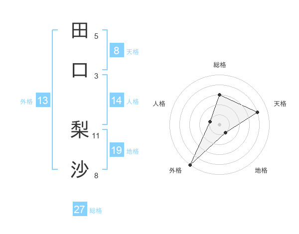田口 梨沙さんを姓名の画数から五運を鑑定
