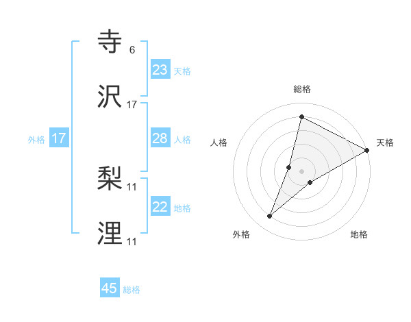 寺沢 梨浬さんの天格は23画の5点!