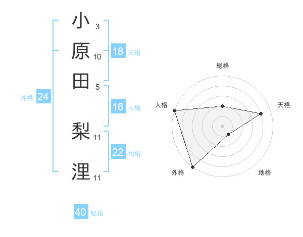 小原田 梨浬さんの総格は40画の2点