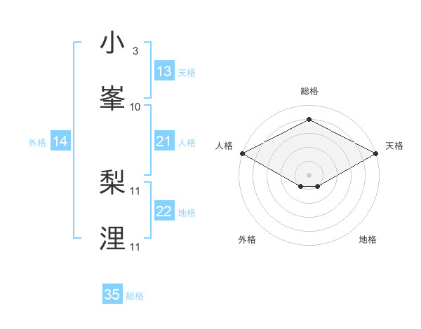 小峯 梨浬さんの天格は13画の5点!