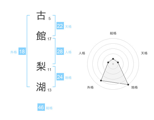 古館 梨湖さんを姓名の画数から五運を鑑定