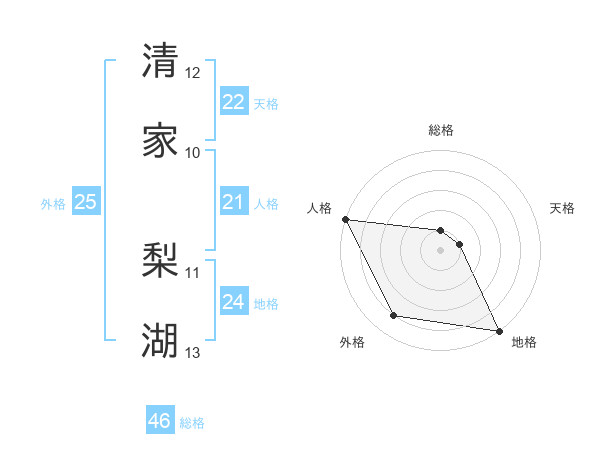 清家 梨湖さんを姓名の画数から五運を鑑定