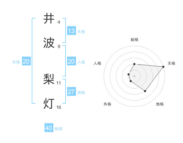 井波 梨灯さんを姓名の画数から五運を鑑定