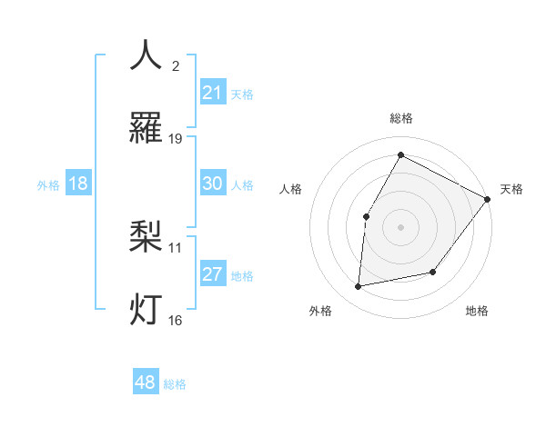 人羅 梨灯さんの総格は48画の4点!