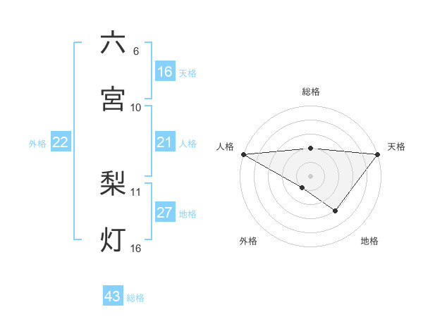 六宮 梨灯さんの総格は43画の2点!