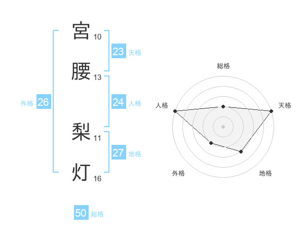 宮腰 梨灯さんを姓名の画数から五運を鑑定