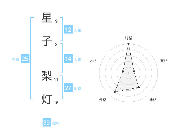 星子 梨灯さんの総格は39画の5点!